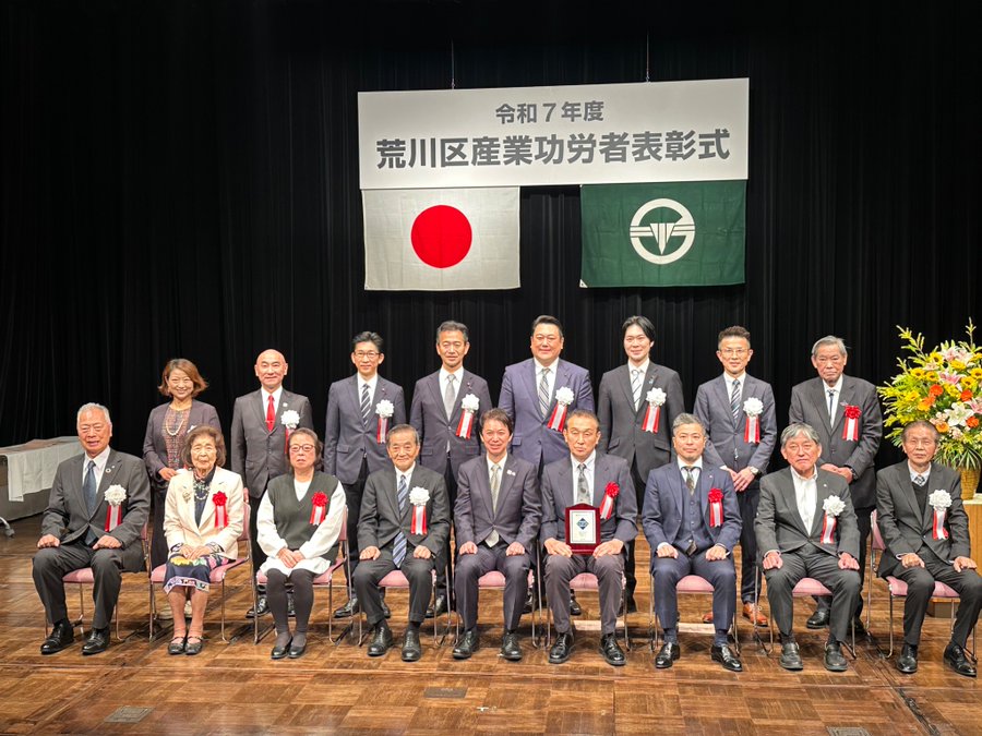 荒川区産業功労者表彰式に参加しました。 この式典は、年一回開催される、荒川区内の事業所で長年勤務された方々や事業所、マイスターの方などを表彰する大切な催しです。今年から健康経営を推進する企業の表彰も行われました。